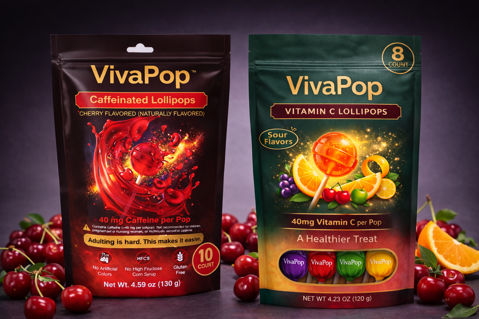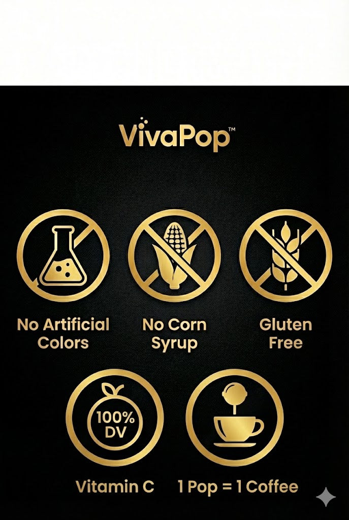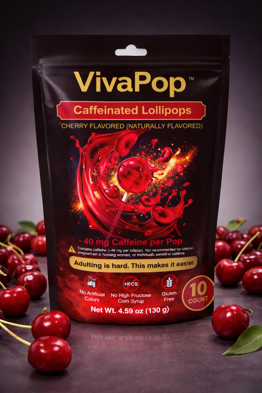Get your energy the fun way with VivaPop Caffeinated Lollipops — the boost of a coffee, in a pop. Bold flavors and clean energy, when you need to power through your day.
